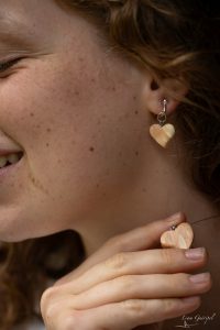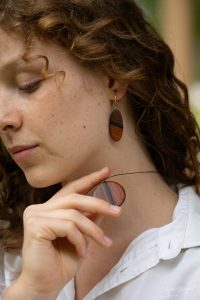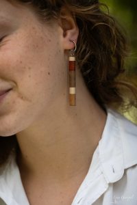 Je façonne chaque pièce avec minutie : boucles, pendentifs, accessoires en bois. Je crée au fil de mes envies et je réalise aussi des pièces sur mesure.